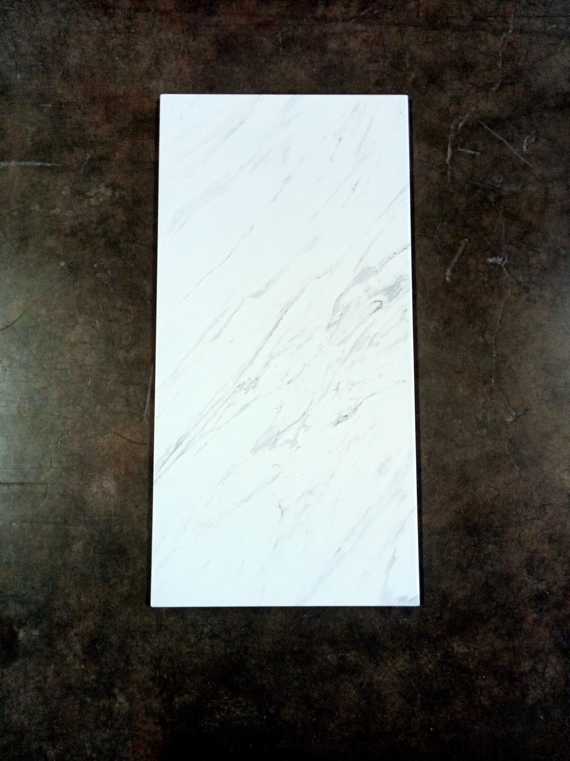 Keramik dinding ukuran 25×50 mempunyai permukaan flat dengan finishing glossy yang bermotif marble.