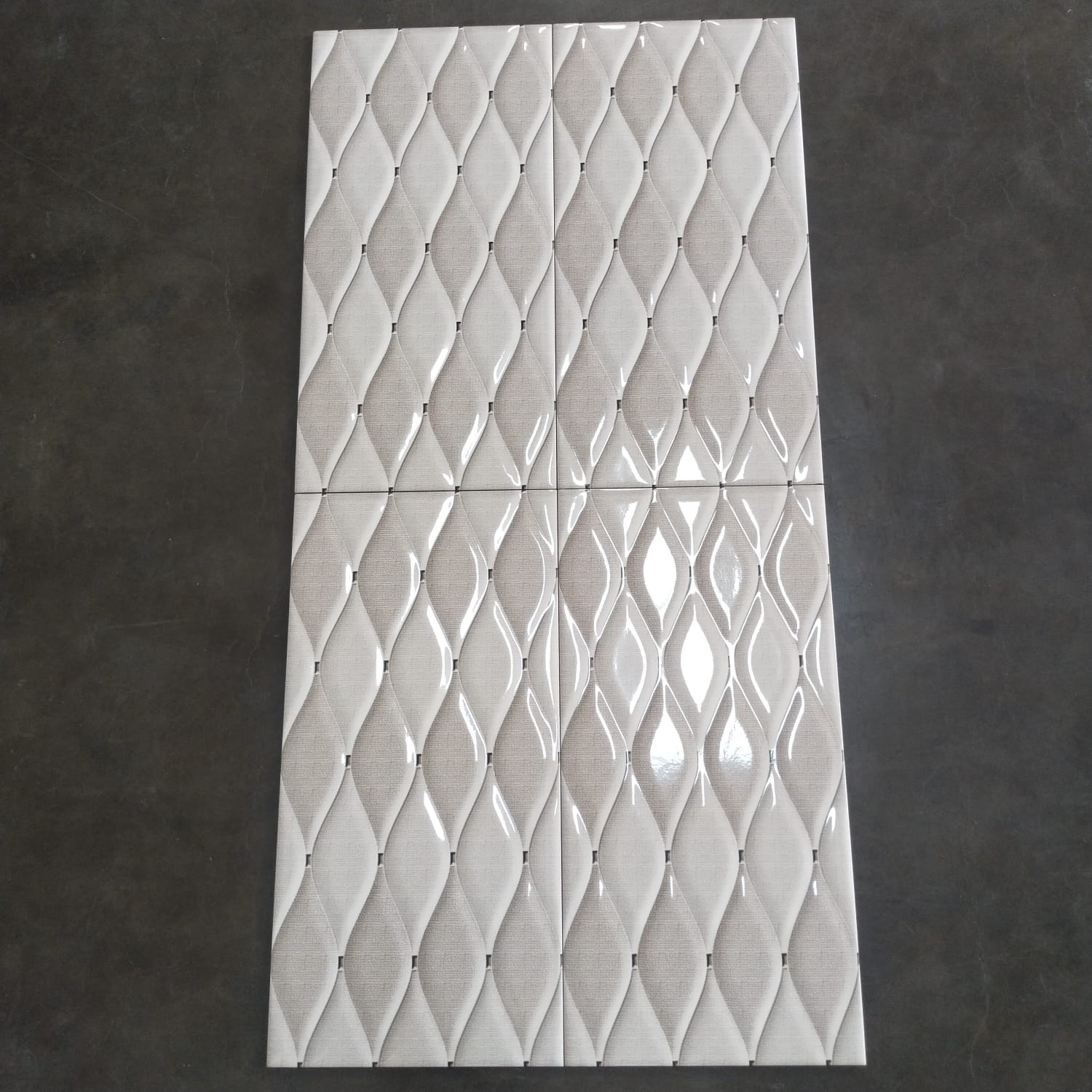 Keramik dinding ukuran 25×50 mempunyai permukaan embossed dengan finishing glossy yang bermotif.