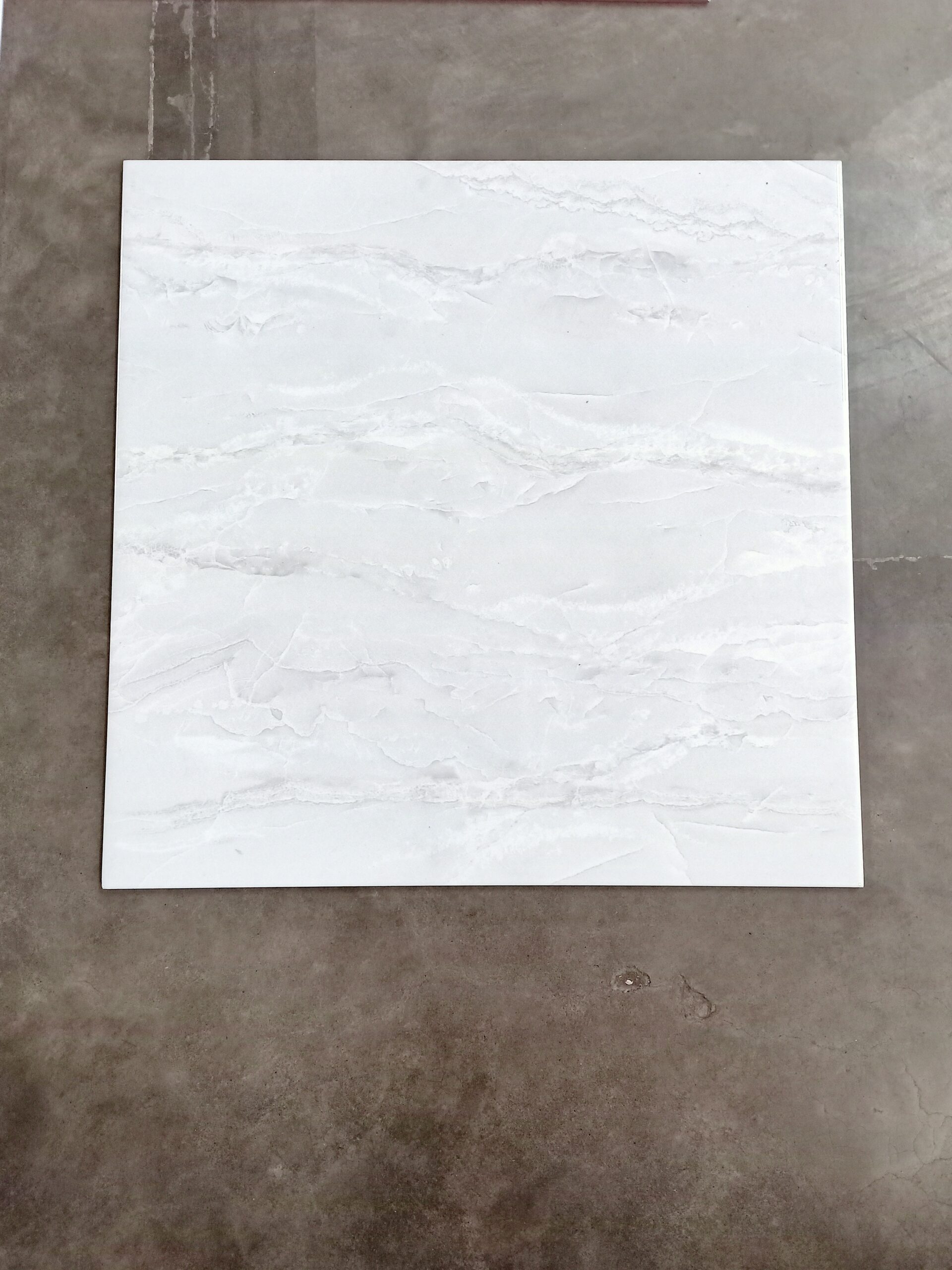 Keramik lantai ukuran 50×50 mempunyai permukaan flat dengan finishing glossy yang bermotif marble.