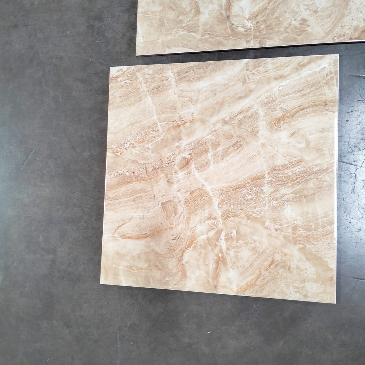 Keramik lantai ukuran 60×60 mempunyai permukaan flat dengan finishing glossy yang bermotif marble.