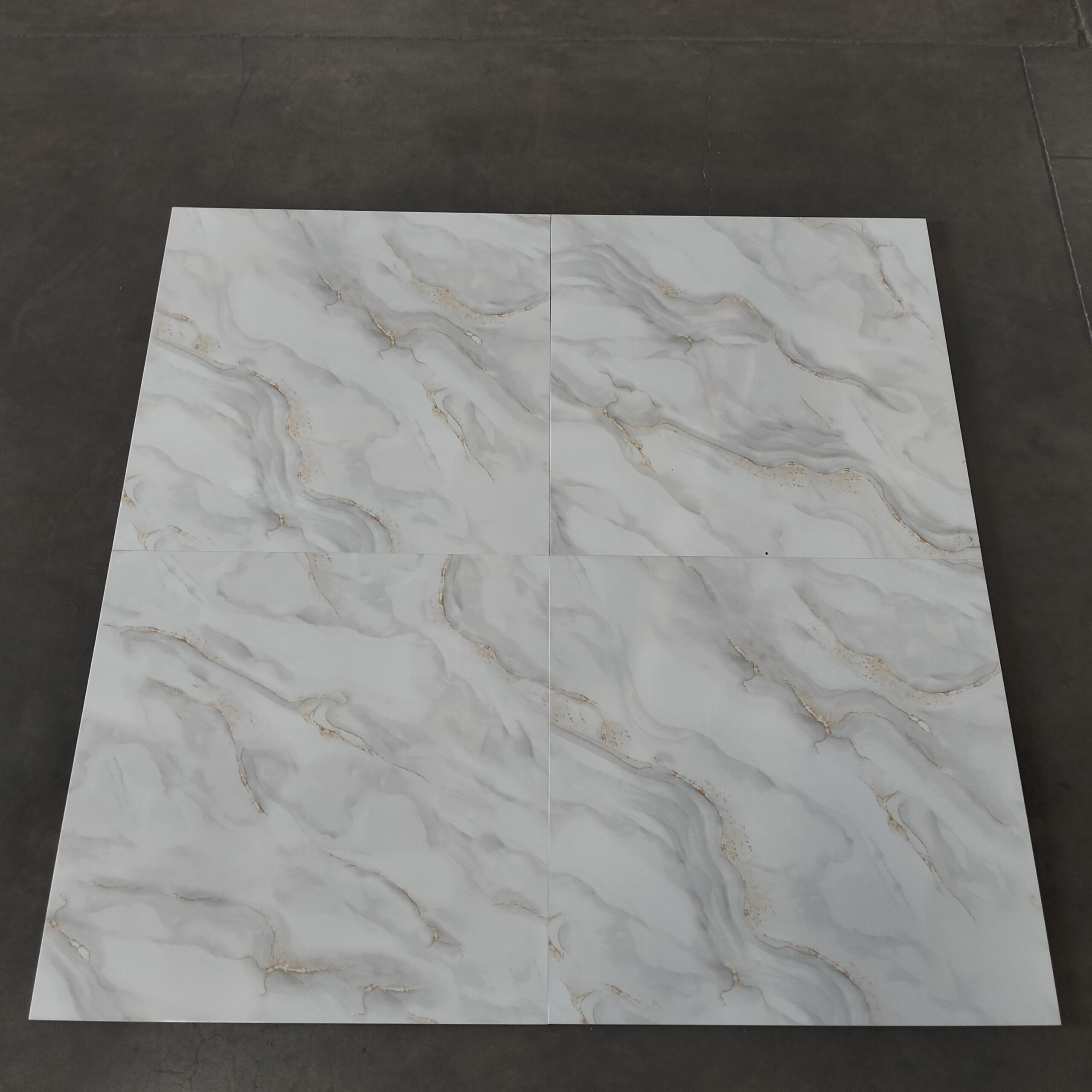 Keramik lantai ukuran 60×60 mempunyai permukaan flat dengan finishing glossy yang bermotif marble.